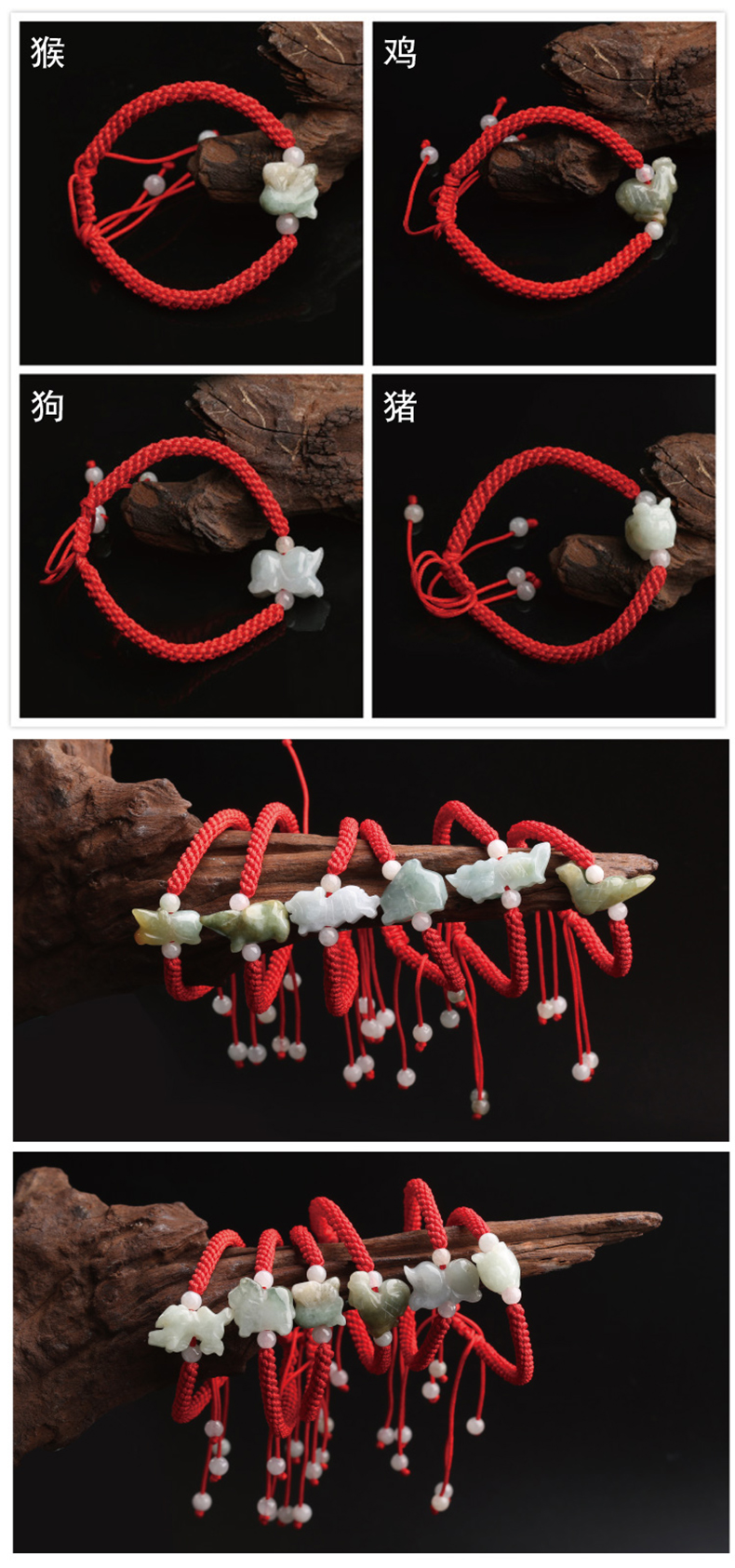 玉之锦|翡翠玉石手饰,-玉之锦 天然翡翠“平安吉祥”立体十二生肖手链