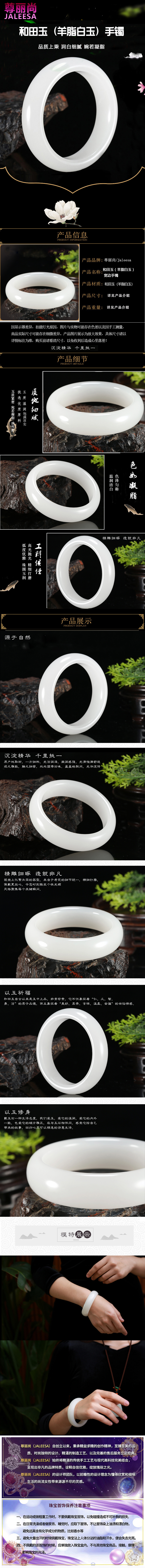 尊丽尚(jaleesa)|翡翠玉石手饰,-尊丽尚/Jaleesa 和田玉(羊脂白玉)手镯(平安镯)