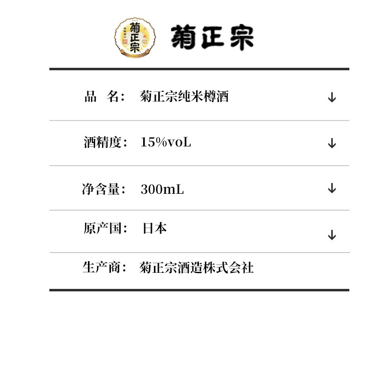 菊正宗(Kiku-Masamune)|洋酒,-菊正宗 纯米清酒 300ml*1瓶