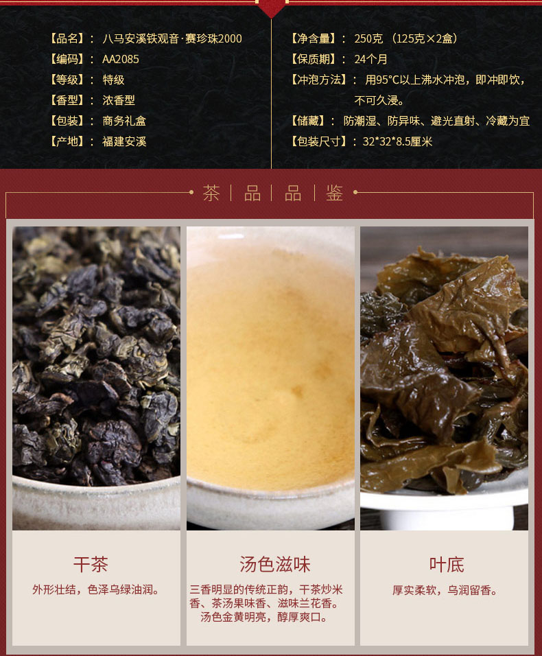 八马|铁观音,-八马 安溪铁观音 赛珍珠2000礼盒(特级,浓香型,250g)
