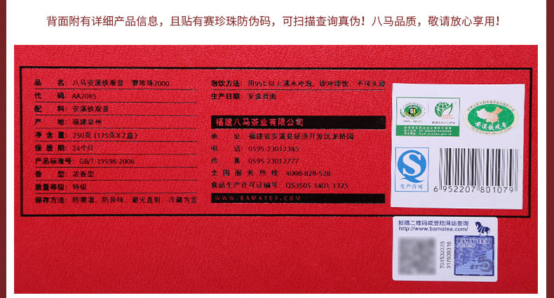 八马 安溪铁观音 赛珍珠2000礼盒(特级,浓香型,250g)>