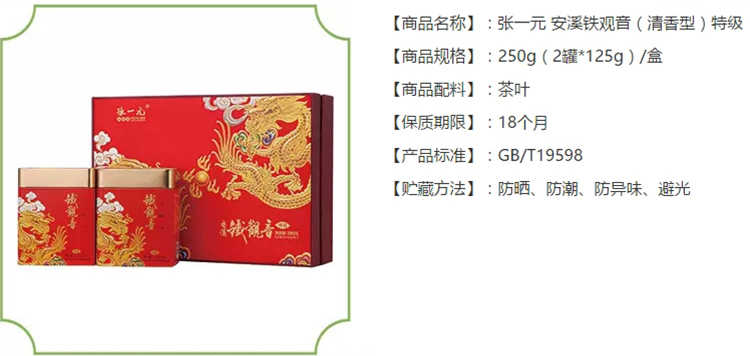 张一元|铁观音,-张一元 特级清香型安溪铁观音礼盒250g/盒(125g/罐*2)