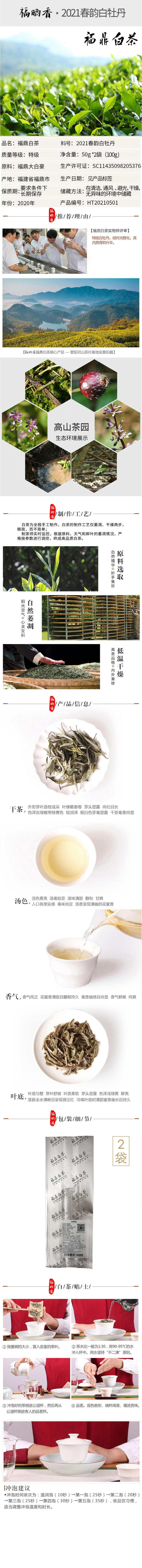 福晒香福鼎白茶2020年特级春韵白牡丹50g*2袋